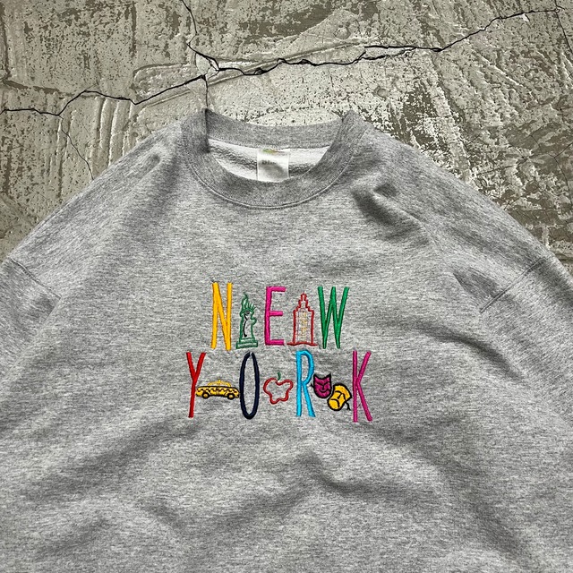 ※高円寺店商品 ・ size 肩幅59.5cm 身幅62cm 着丈64.5cm ・ (model 172cm) ・ "NEW YORK"の名物が刺繍されたスウェット!! ・ どんなパンツ・アウターとも相性のいいグレーカラーボディ◎◎ ・ カラフルな刺繍が映えますね!! ・ 身幅と着丈バランス良く、丸みのあるgoodシルエット!! ・ 何着持っててもいいスウェット、ビビッときた方はぜひ!!