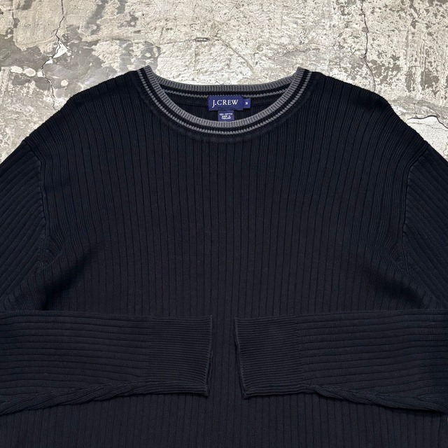 size 肩幅45cm身幅58cm着丈63cm ・ (model 165cm) ・ 洗濯機で洗えてチクチクしないコットンニット! ・ 鉄板のブラックカラー、首リブのグレーがワンアクセント◎◎ ・ リブニットでジャストで着れるサイズ感も気分なところ◎◎ ・ 気のきいたグッドニット!流石のJ.CREWです!!