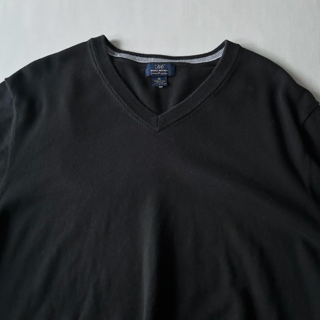 size 肩幅53.5cm 身幅61.5cm 着丈72cm ・ model:167cm ・ ブルックスブラザーズのコットンニット! ・ ハイゲージで浅めのVネック、色はブラックと品のあるルックス◎ ・ 表記はXLでゆとりあるサイズ感も嬉しいところ◎◎ ・ 気分な方是非です!