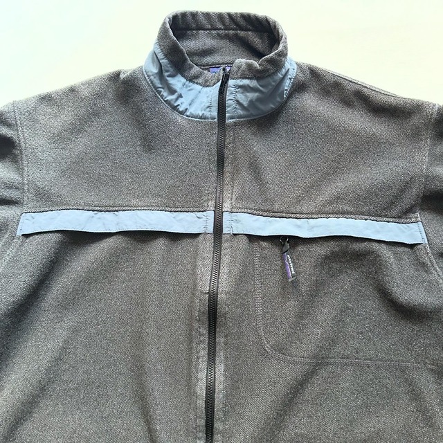 size 肩幅60.5cm 身幅70cm 着丈68cm ・ model:167cm ・ パタゴニアのシンチラベースンジャケット! ・ グレーボディに水色のナイロン切り替え シンプルながら効いたデザイン◎◎ ・ 表記はXLでゆとりあるサイズ感 オールドパタでこの条件は嬉しいですね◎◎ ・ 袖に汚れ(画像9枚目)、ジップ交換、所々に生地の剥げがありますので控えめプライスです!