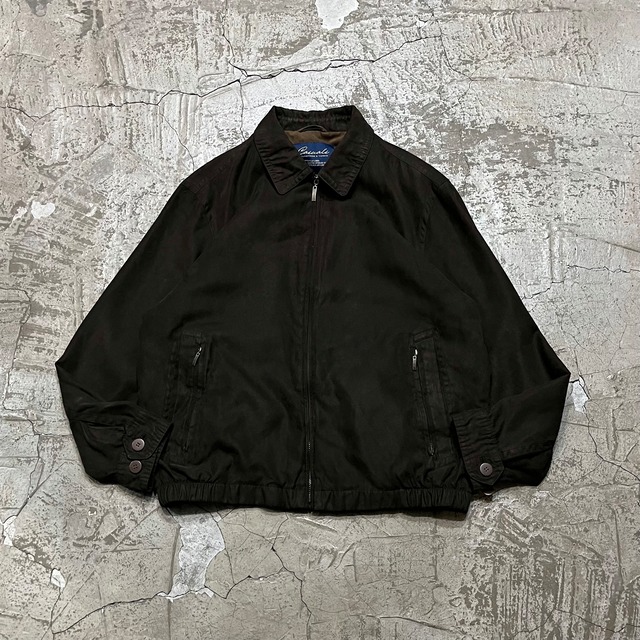※高円寺店商品 ・ size 肩幅53.5cm 身幅63.5cm 着丈68.5cm ・ (model 172cm) ・ スウェードを模した起毛感のあるスムースポリエステル生地のスウィングトップ!! ・ しっかりと深いブラウンカラー◎◎ ・ 裏地薄いタイプなので、秋から春まで長い時期使っていただけます!! ・ 流行りの短丈シルエットながらもゆとりあるのでインナーちゃんと着込めます!! ・ ここまでちゃんと深い色味のものは中々無いのでおすすめです!!