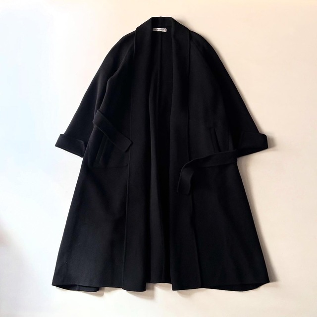 made in Italy ・ size 肩幅-(シームレス)身幅56cmくらい着丈113cm ・ (model 165cm) ・ イタリア製のオールドアルマーニ! ・ ボタンレスでベルトがつくガウンスタイルのコート◎◎ ・ 上質なウール(ポリ混紡)生地でブラックカラー◎◎ ・ スーパーロングで肩まわりのおさまりも良し◎◎ ・ アウターのインにレイヤードするのもオススメです!!