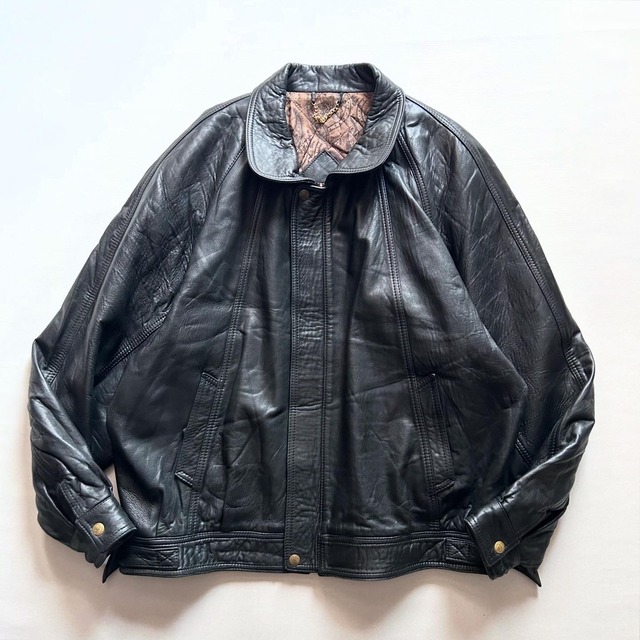 made in spain ・ size 肩幅-(ラグランのため) 身幅73cm 着丈67cm ・ model:167cm ・ スペイン製のレザージャケット! ・ モチモチ柔らかで着用感良し◎◎ そのうえショート丈のブラック! ・ 変わらずお探しの方も多そうですね! ・ 程よく暖の取れる裏地はキルティング、ちらりと見えるペイズリーもグー! ・ お探しの方是非です! ・ 袖にちょいダメージ(画像10枚目)あります。