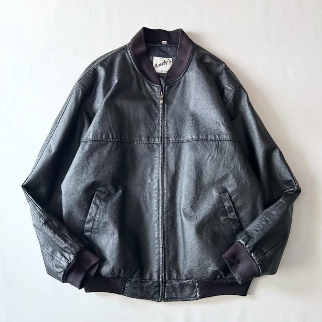 size 肩幅61cm 身幅70cm 着丈70cm ・ model:167cm ・ 変わらず好評なレザージャケット! ・ フーディーで合わせた時に干渉しない首リブ仕様は個人的に高ポイント◎◎ ・ 鉄板ブラックでショート丈◎◎ ゆったりしたサイズですが、肩の馴染みやカタチは良く、着た時のバランスもグッド◎◎ ・ 所々にスレや生地の剥げ(画像6枚目)はありますが、ダメージ等はないコンディションです!
