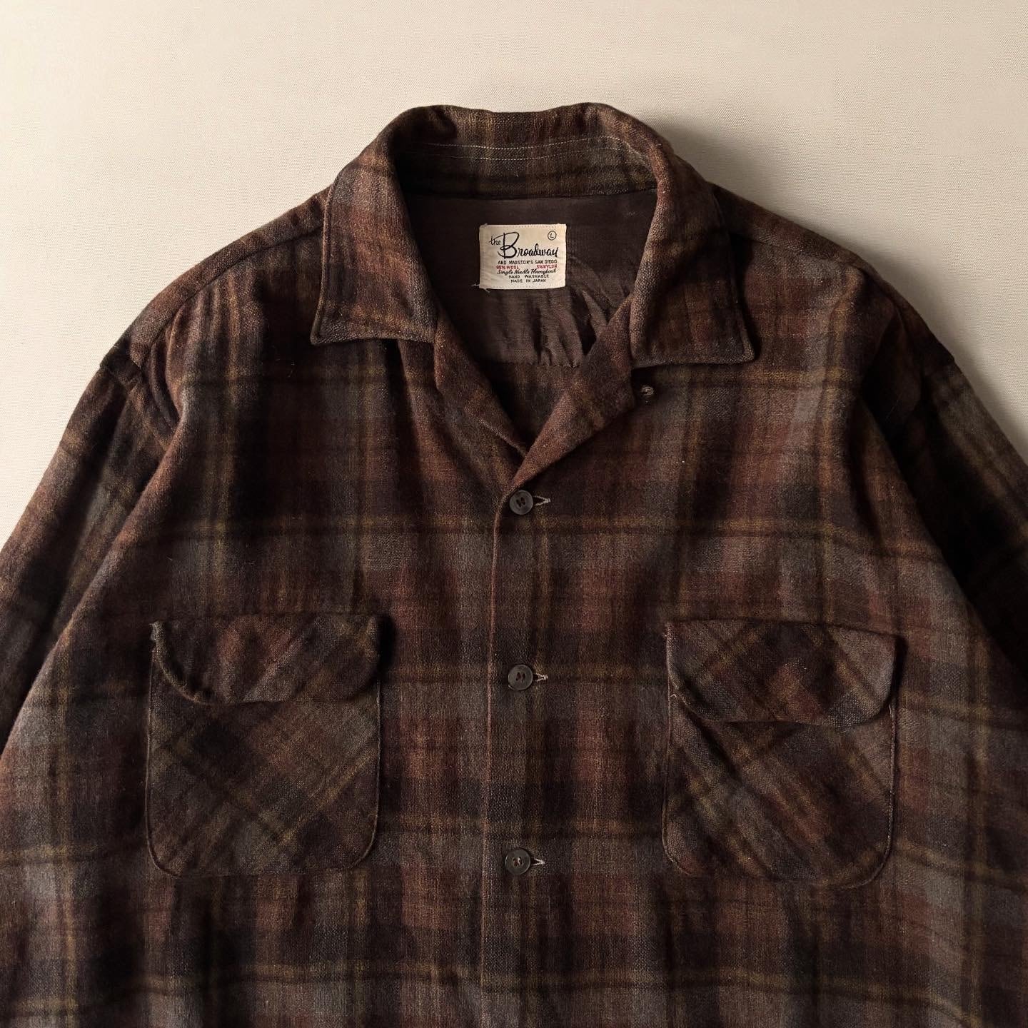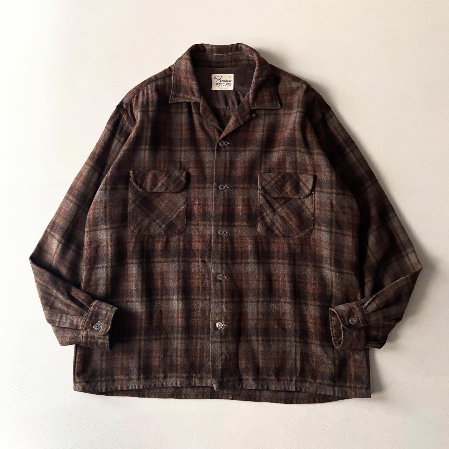 vintage L/S open collar wool×nylon shirt