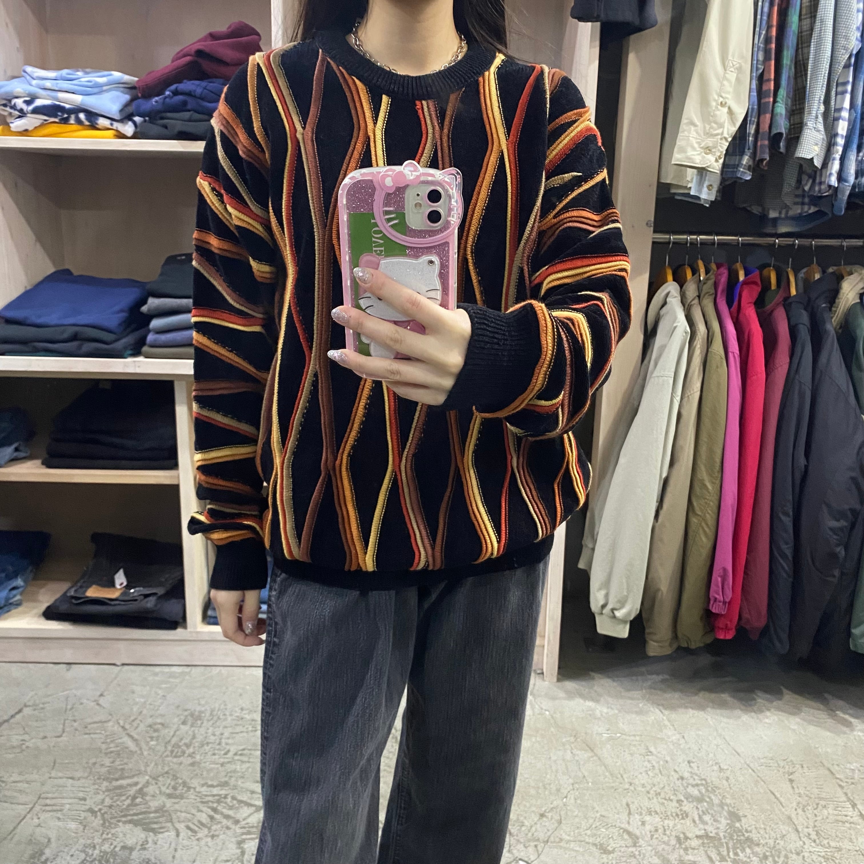 【高円寺店】OLD Acrylic×Mercerized cotton 3D design knit sweater