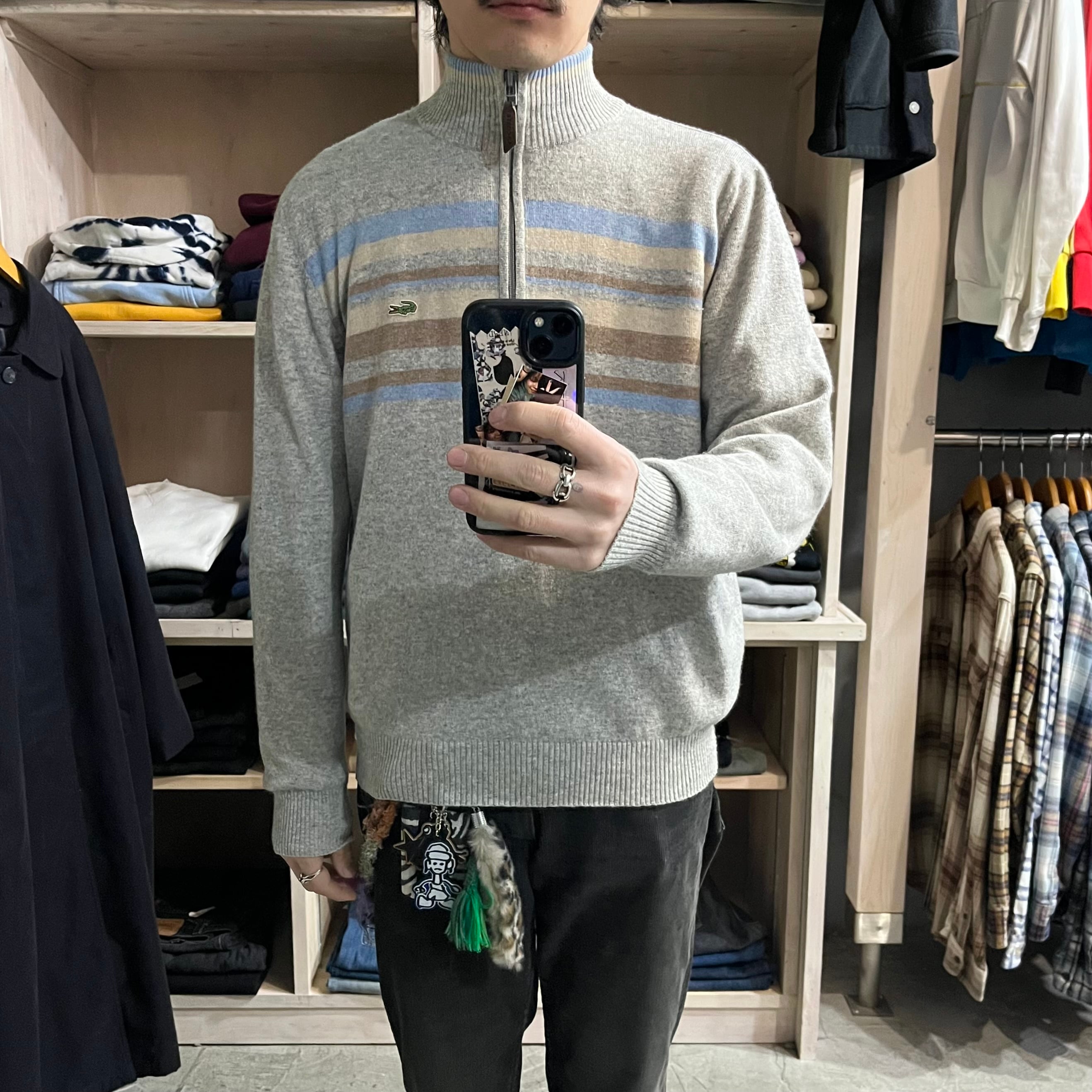 【高円寺店】LACOSTE wool×cotton×nylon line design half zip knit