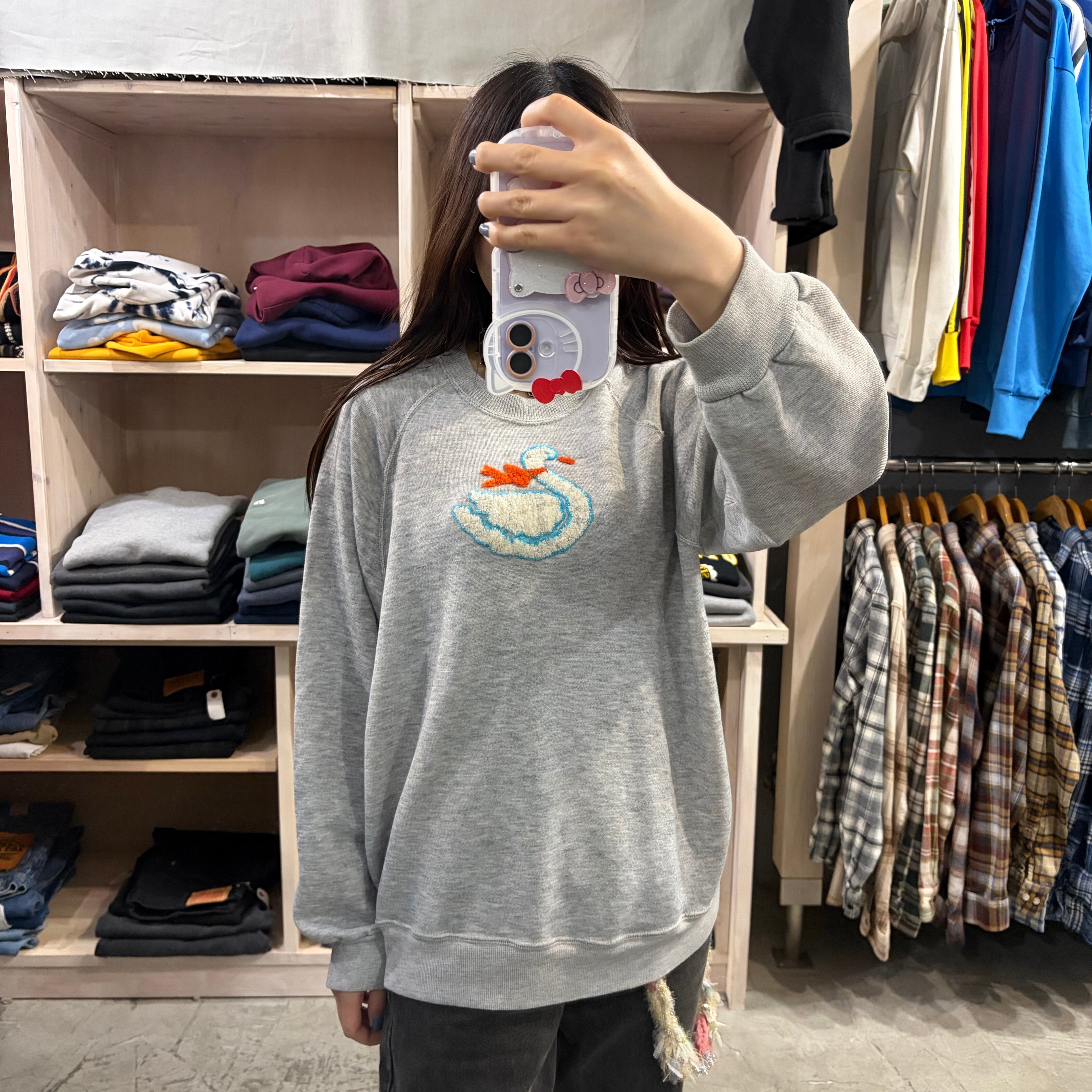 可愛らしいアヒルの刺繍がフロントに施されたスウェット