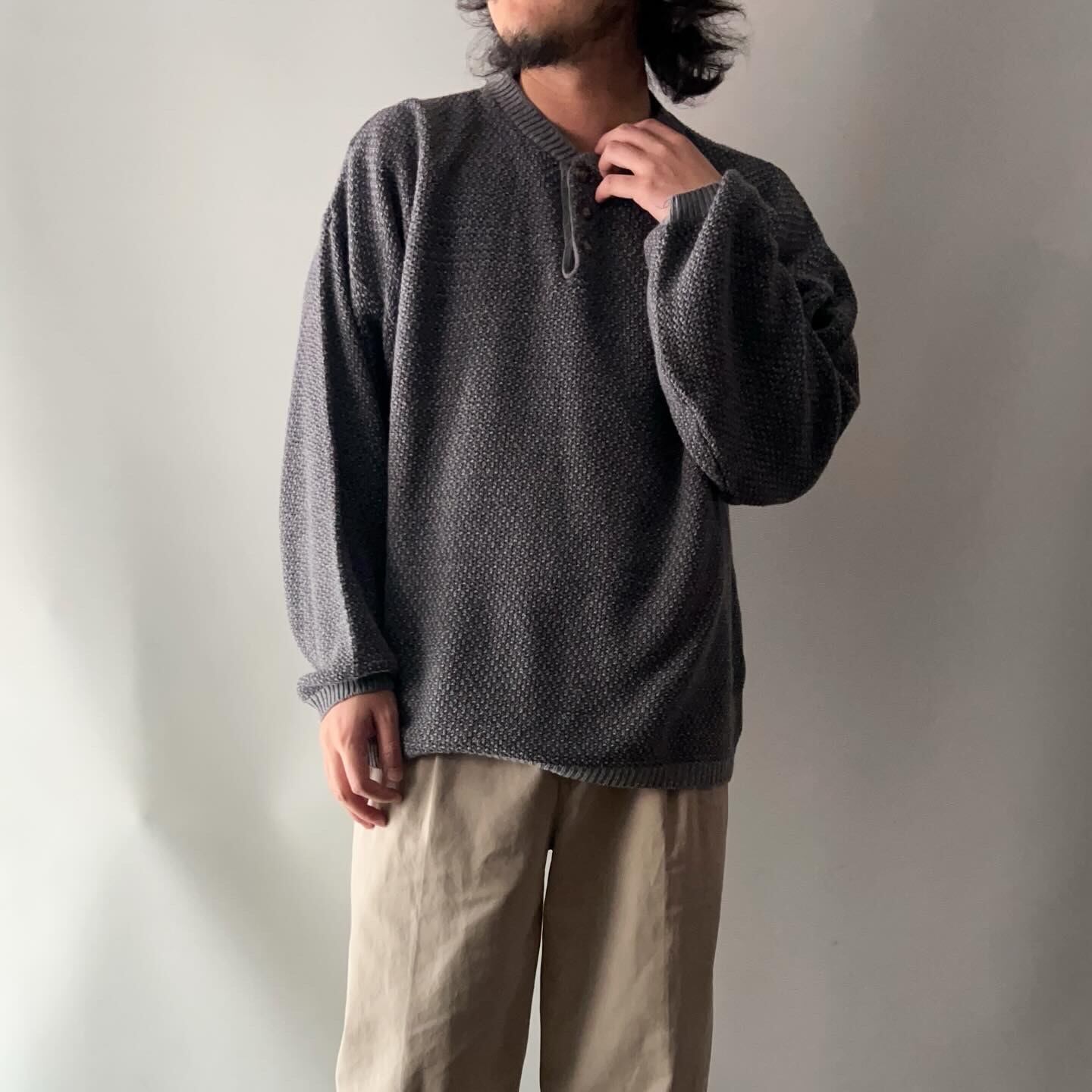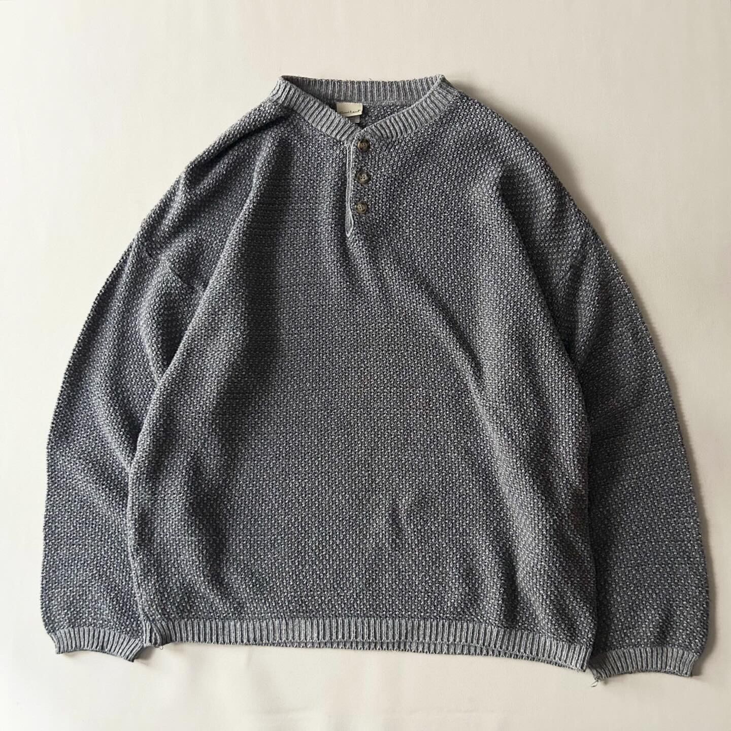 【原宿店】old henley-neck cotton knit sweater