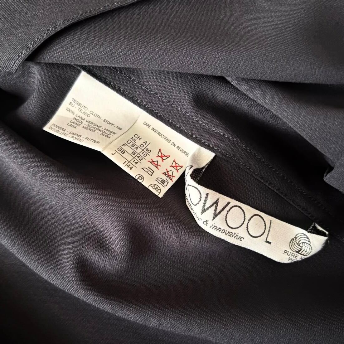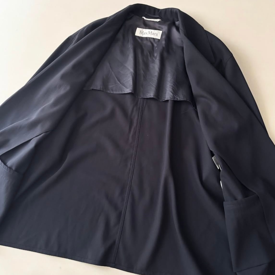 上品なダークネイビーカラー、ウールですが薄手でサラッとした生地感◎◎