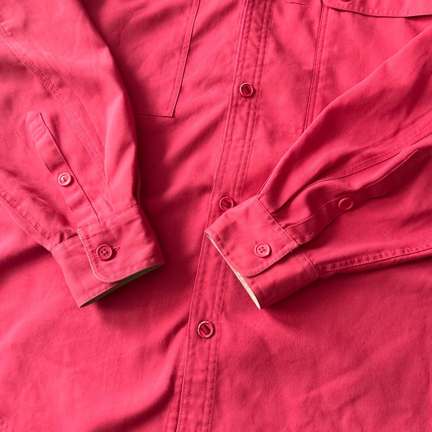 フラップポケットのボタンの欠けと袖に黒ずみ(画像8枚目)がございますので控えめプライスです!