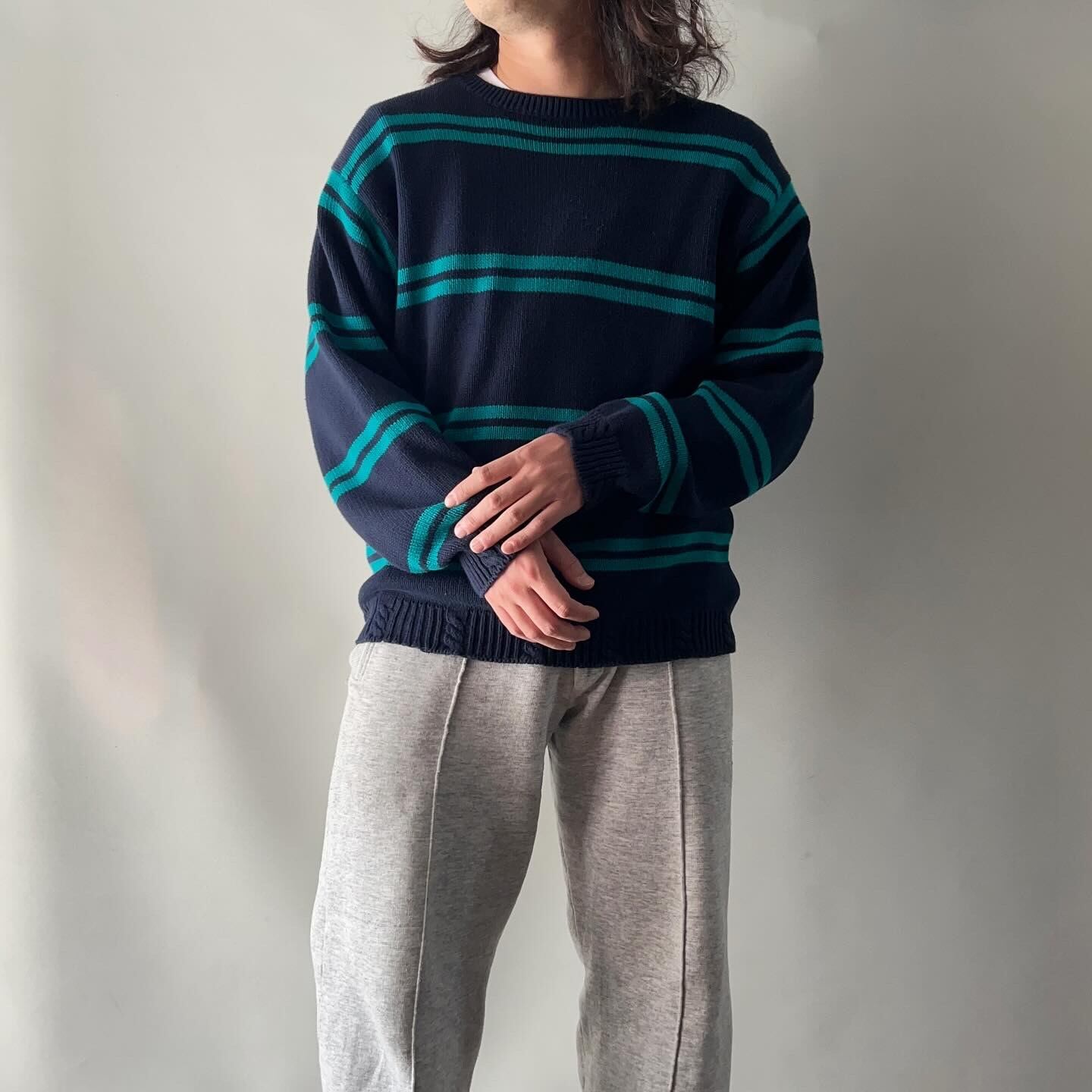 ネイビーベースにターコイズボーダー
